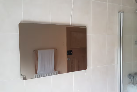 Due to the infrared heating process, the mirrors heat up objects in the room rather than the air. This helps keep bathroom walls and fittings warm, dry, and mould-free.